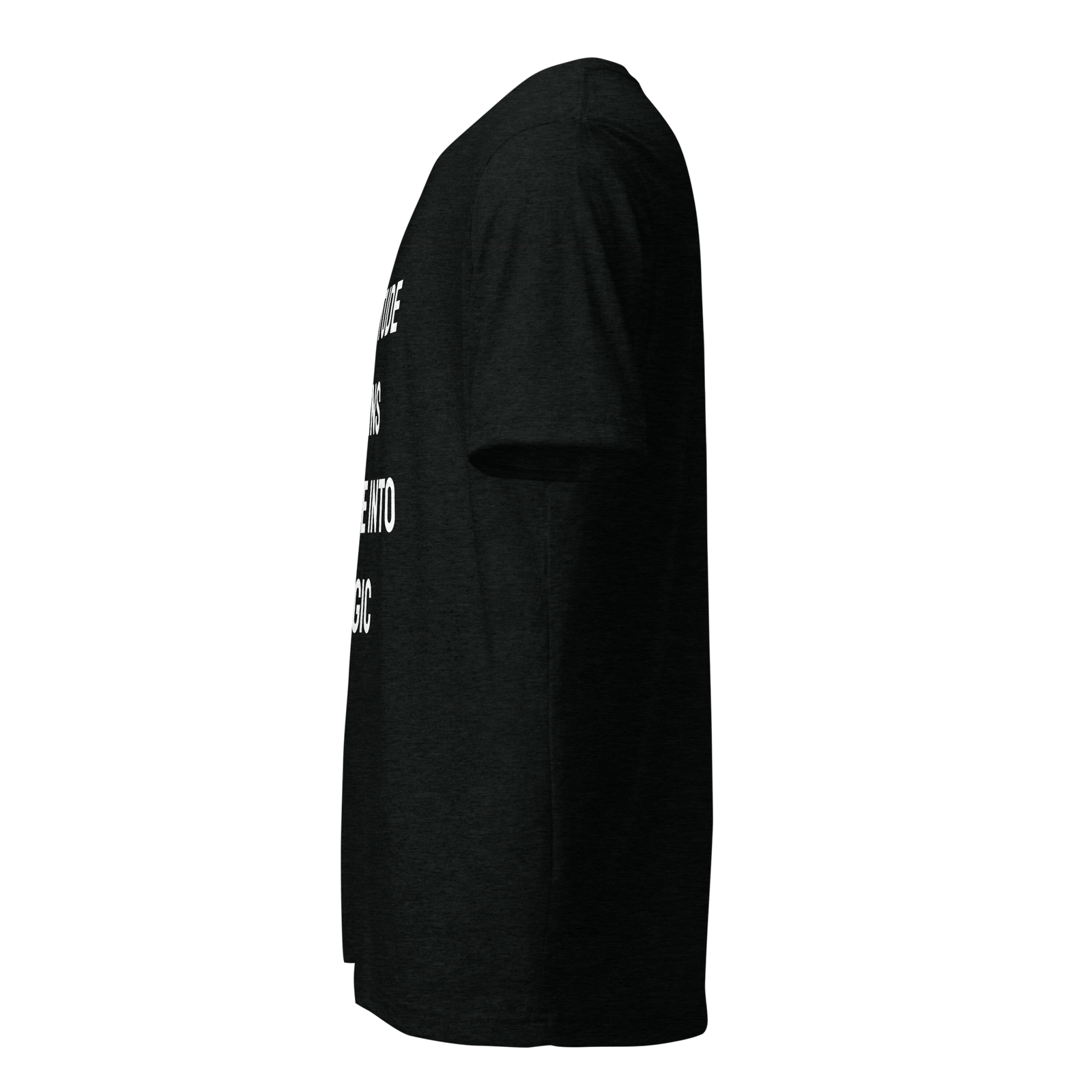Shop the Bella + Canvas 3413 White Tri-Blend T-Shirt. Features ‘Gratitude Turns Simple Into Magic’ quote. Ultra-soft, vintage fit, sustainable on-demand.